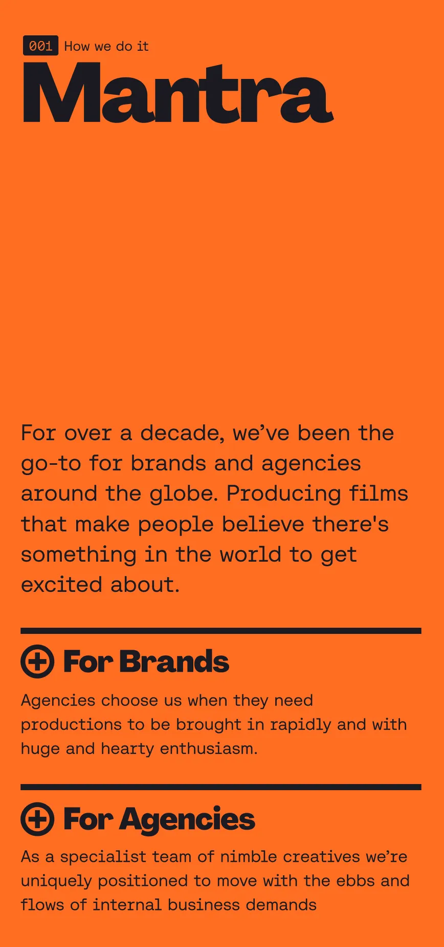 Working closely with the Gusto team throughout, we explored the application of the revised aesthetic to a new suite of design templates - each designed to guide the user through Gusto's services, projects, and expertise. The resulting website is smart, captivating and dynamic, just like Gusto's film productions.