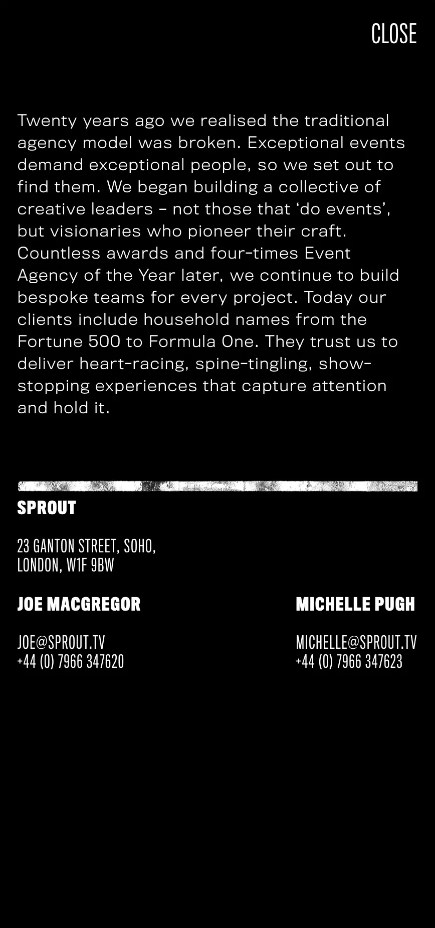Sprout are a collective of creative experts who help brands deliver extraordinary live events. By assembling bespoke teams of industry visionaries for each project, they create award-winning, unforgettable experiences for the Fortune 500 and Formula One. Following a brand refresh & website re-design (by Felt Tips) - Sprout needed help bringing their new website design brought to life.